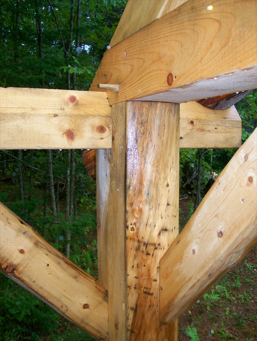 Here we have another style frame with a timber framed roof system a top log posts and rails. This beech house gazebo measures 13’x13’. All log work is constructed of Eastern white cedar and roof framing is eastern Hemlock.